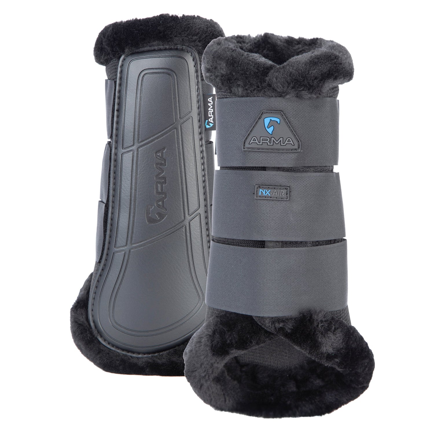 ARMA NX-AIR brushing boots have an open airy, structure and a heat releasing action. Ideal for warm weather exercise, training or competition, 3D mesh encourages air to flow as the horse moves, keeping the legs cool and dry. Luxurious ProComfort SupaFleece trims give that elevated look without affecting the boot's performance.