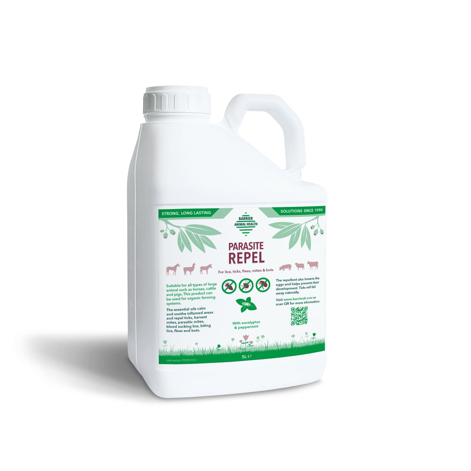 Barrier Parasite Repel is designed especially for horses that suffer from parasitic problems. It is a quick acting liquid formulation that rids animals of all types of biting and sucking lice, mites, midges, ticks, mosquitos and black flies as well as helping to prevent fly eye. Fully HSE approved. HSE licence no: 8163.