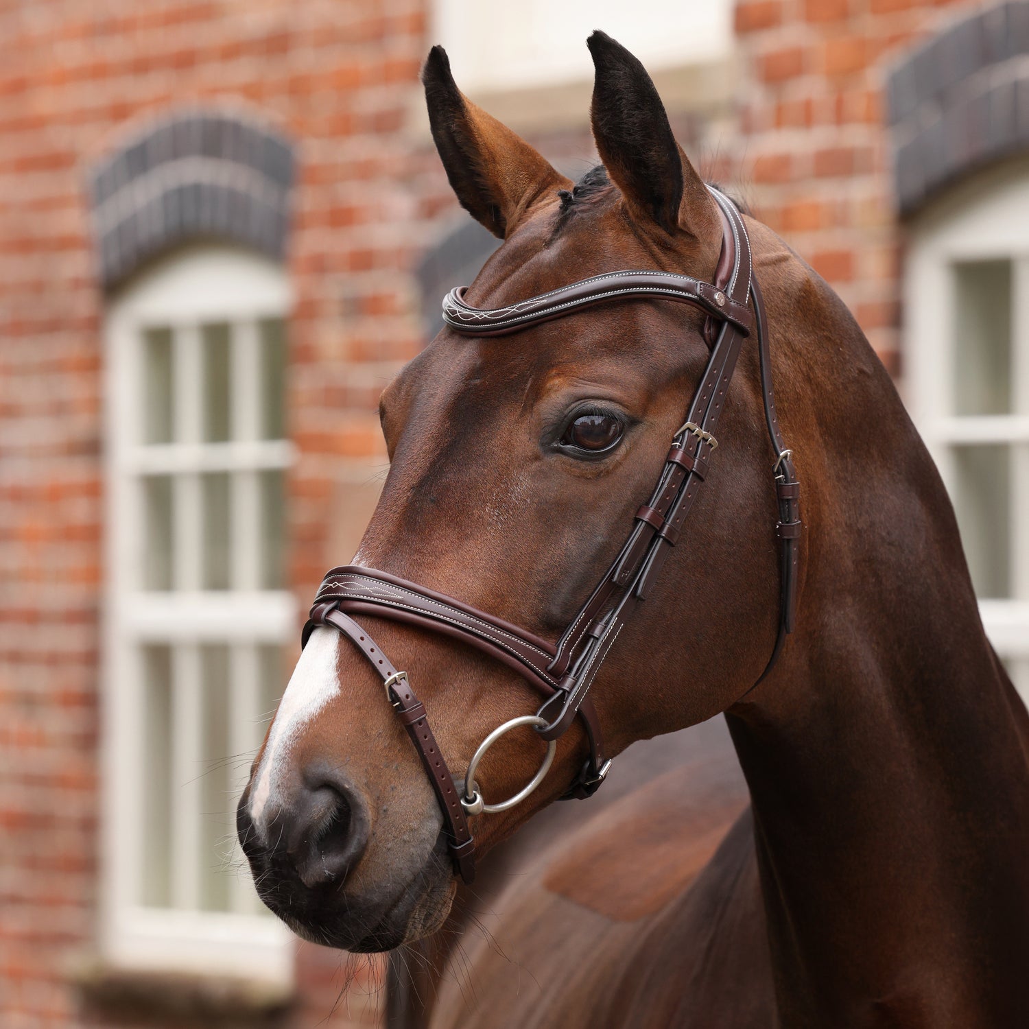 The broad front section helps distribute pressure evenly, while a streamlined profile accommodates horses with finer head structures. Fitted with the 180 Mono Headpiece: Single-piece, ergonomic contour poll, cut away ears and leather lined shock absorbing padding extending fully over the browband loop for 180° comfort. Pressure dispersal reduces localised pressure points for long-term comfort and stability.