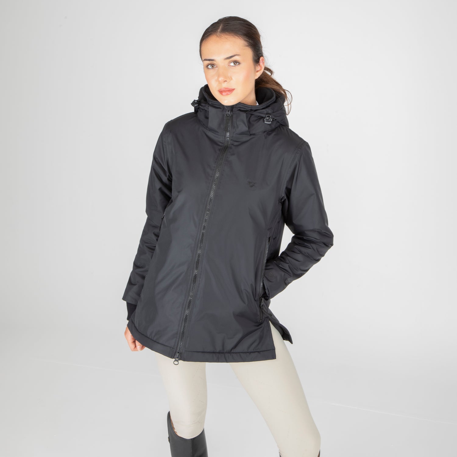 On the inside, deep pile fleece lining is cosy, insulating and breathable. Versatile for all year useability whether you’re layering up for the yard duties or staying active in the saddle. When its windy or cold keep out the chill with stretch wrist cuffs, highline neck, fleece lined hood and longer length. Rider enhanced benefits include hem opening zip, rear and side rider vents for seated comfort, and a removable hood for rider preference.