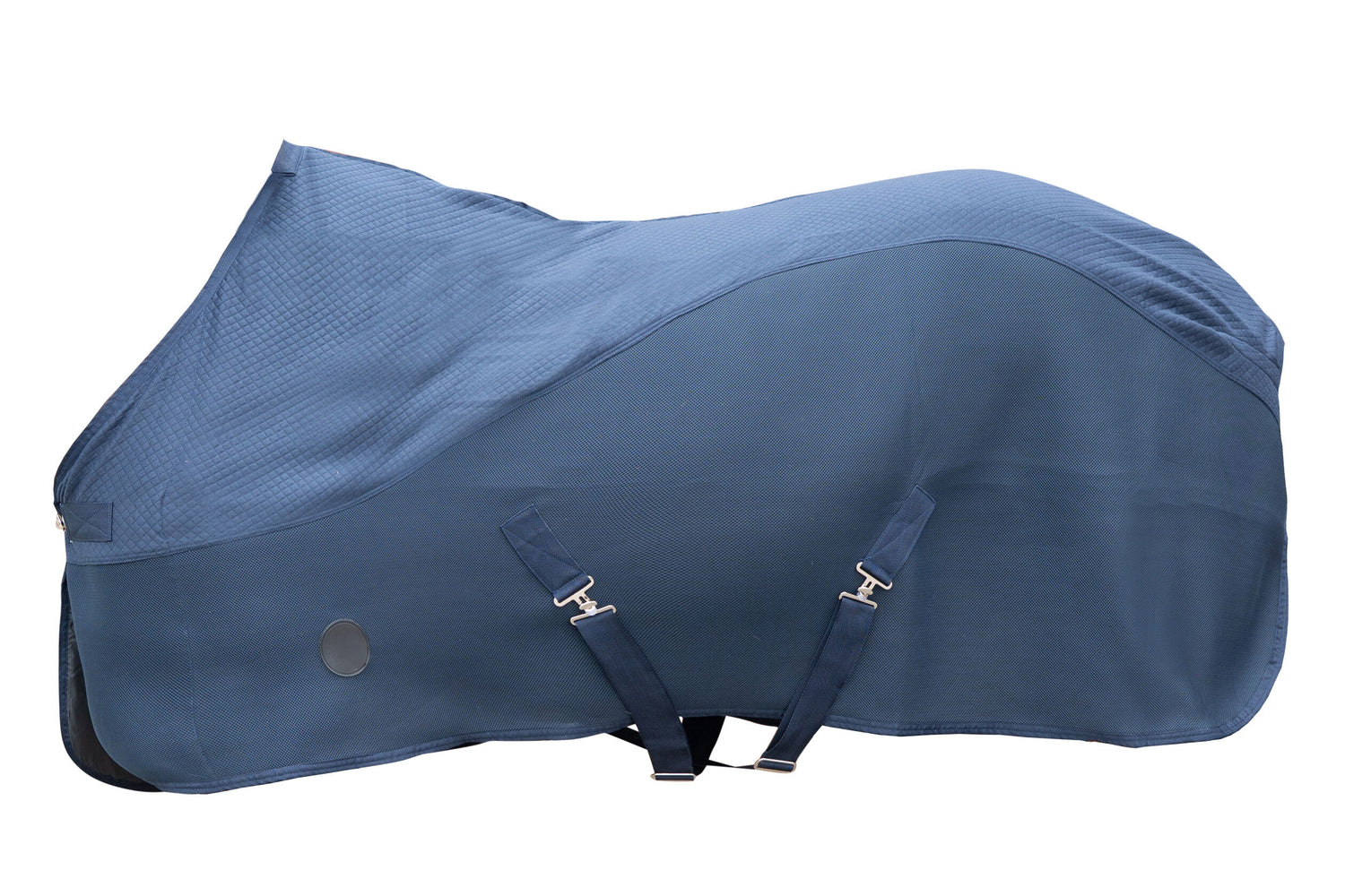 Designed for a secure fit, it features crossed surcingles with metal buckles and a tail strap to keep the rug in place.
