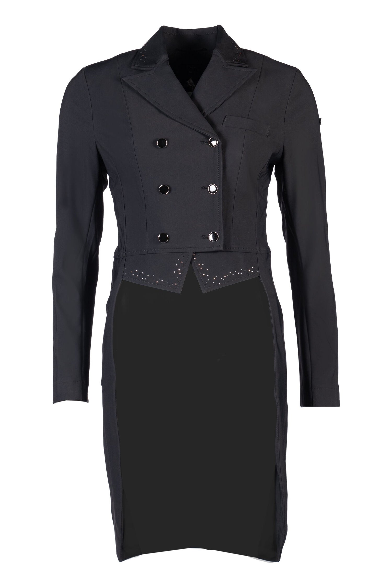 The HKM Tailcoat - Jill is an elegant and performance focused competition coat designed to create a striking impression in the arena. Made from stretch material, it offers a comfortable fit with excellent freedom of movement.
