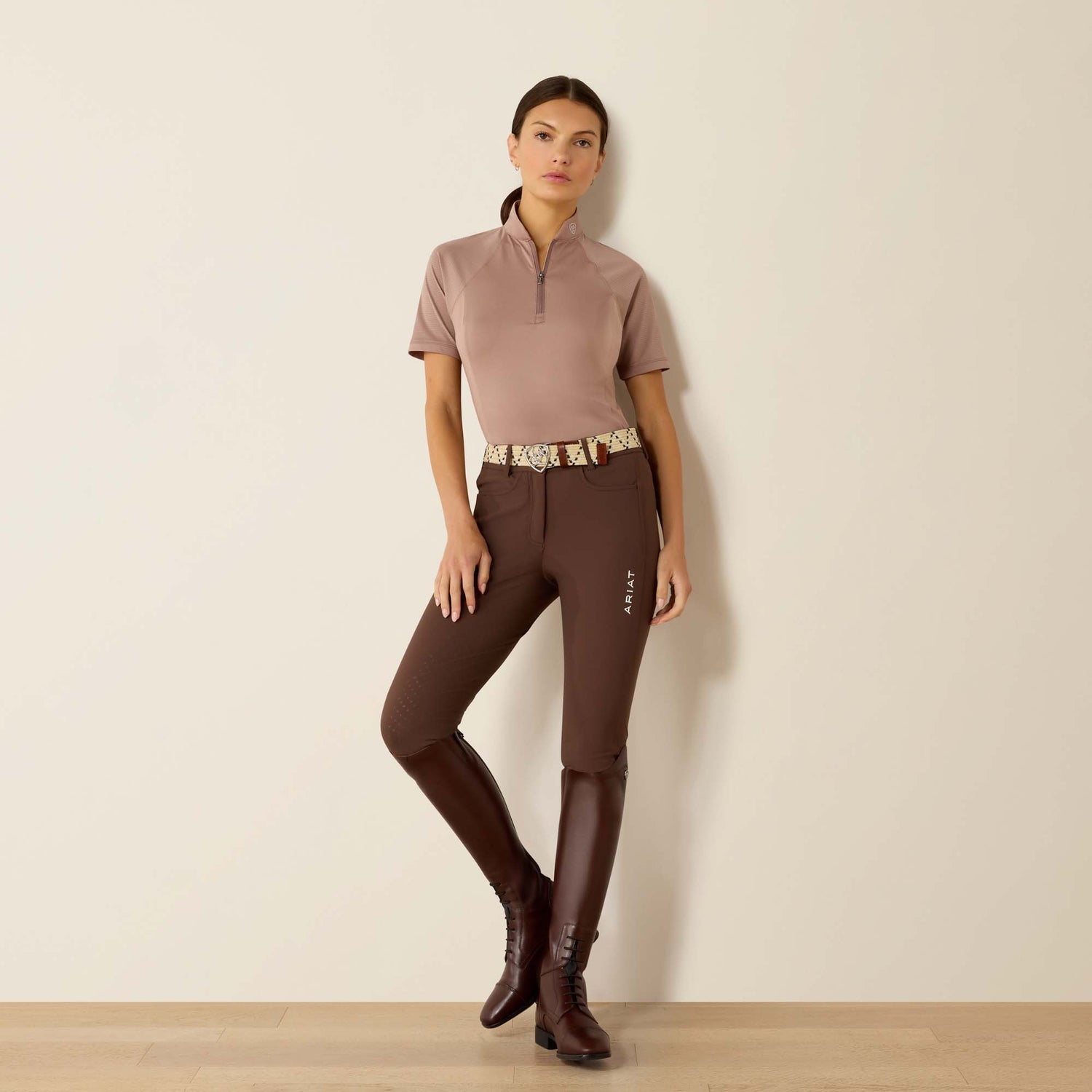When you want the elegance of a show shirt but the athletic performance of your favourite training top, slip into Soquel. With a contemporary collar and seamless blend of jersey and mesh fabrics, it's a must-have for schooling shows and warm-weather clinics.