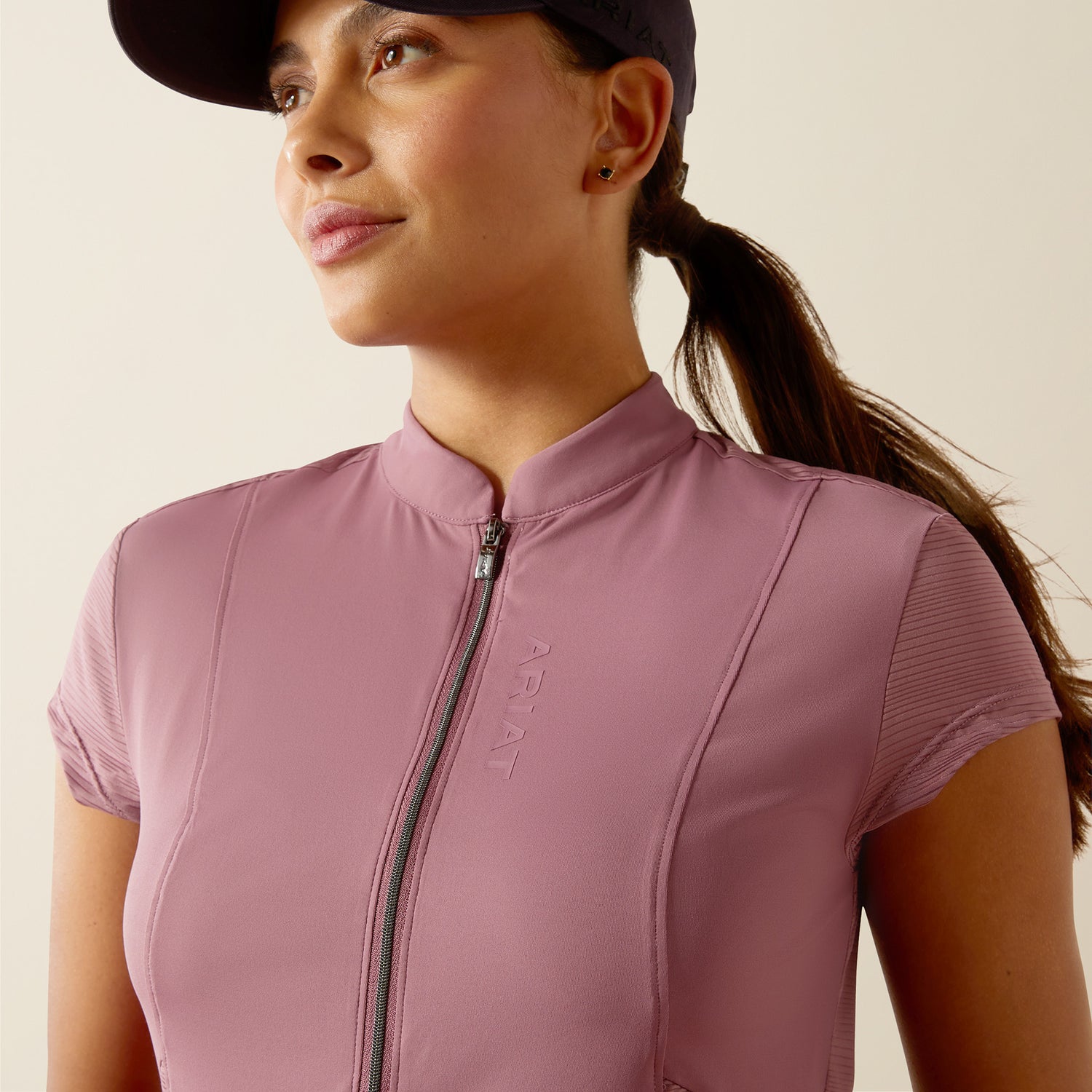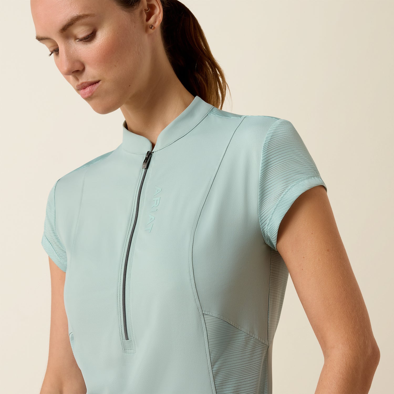 - Stand collar with quarter-zip front