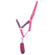 Dieses lustige rosa Halfter ist die perfekte Ergänzung für die Garderobe Ihres Pferdes. Verziert mit Kronen- und Sternmustern an Nasen- und Backenstücken, passend zur Little Rider-Reihe. Komplett mit verstellbarem Schnallenkopfstück und zweifarbigem Führstrick.