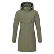 The HV Polo Milana Parka is fully functional and features taped seams and a mesh lining. The high collar includes a placket, windcatcher, and chin protector, while the detachable hood can be secured at the back.